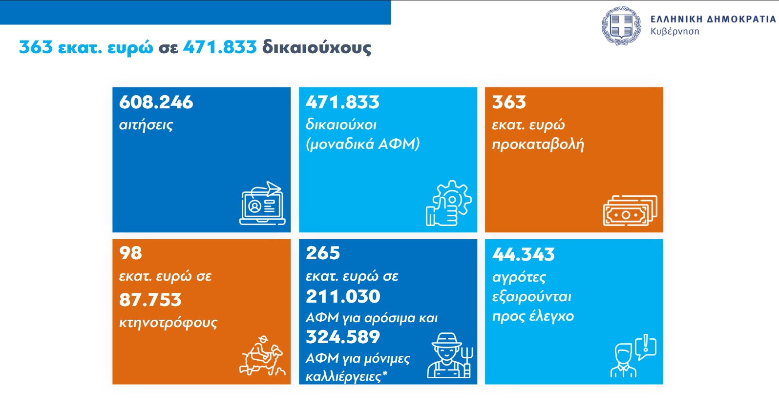 471.833 δικαιούχοι, θα λάβουν 363 εκατομμύρια ευρώ μετά από έναν μαζικό και αυστηρό κύκλο ελέγχων που καλύπτει συνολικά 608.246 αιτήσεις ΟΣΔΕ.