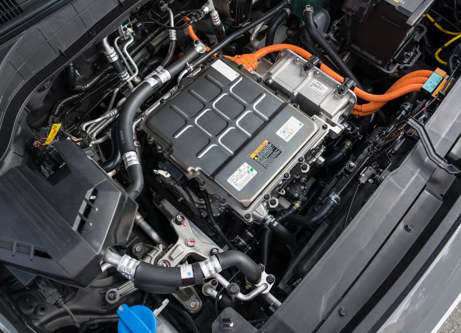 Η μπαταρία είναι ίδιας τεχνολογίας μ’ αυτή του κινητού σας τηλεφώνου (ιόντων λιθίου). Αν επιλέξετε να επιδοτηθείτε και για επιτοίχιο φορτιστή μπορείτε να υπολογίσετε πως με ρυθμό φόρτισης της 7,2 kwh, η φόρτιση με εναλλασσόμενο ρεύμα (AC) διαρκεί περίπου 10 ώρες για τη μεγάλη μπαταρία των 64kWh και 6 ώρες για τη μπαταρία των 39kWh. Μπορείτε επίσης να φορτίσετε σε μια κοινή οικιακή πρίζα αλλά υπολογίστε τριπλάσιο χρόνο. Η θύρα φόρτισης βρίσκεται στη μάσκα του αυτοκινήτου, δίπλα στο λογότυπο Hyundai.