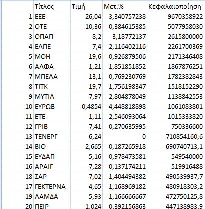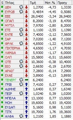 Σημαντικές πιέσεις δέχτηκαν δεικτοβαρείς μετοχές στη συνεδρίαση της Παρασκευής όπως οι ΔΕΗ, Coca Cola, ΟΠΑΠ, Μυτιληναίος κ.ά.