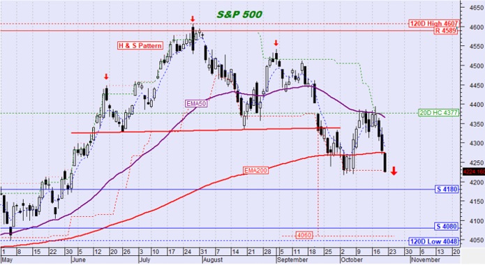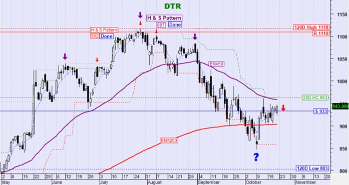 Ο ΓΔ συνέχισε ήπια καθοδικά. Διατήρησε τη στήριξη του ΕΜΑ200 και παρέμεινε εκτός της περιοχής 1020-1150 μονάδες, όμως προς το παρόν δεν υπάρχει κάποια αξιόπιστη σηματοδότηση και έτσι δεν μπορεί ακόμη να θεωρηθεί ότι η μεσοπρόθεσμη διόρθωση έχει ολοκληρωθεί στο χαμηλό της 9 Οκτ. Η μεσοπρόθεσμη τάση παραμένει καθοδική.