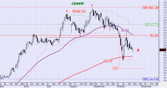 Η τιμή της μετοχής γύρισε καθοδικά και πέτυχε την διάσπαση του ΕΜΑ50 και νέο χαμηλό κλείσιμο 20 ημερών με αποτέλεσμα η μεσοπρόθεσμη τάση να γίνει καθοδική.