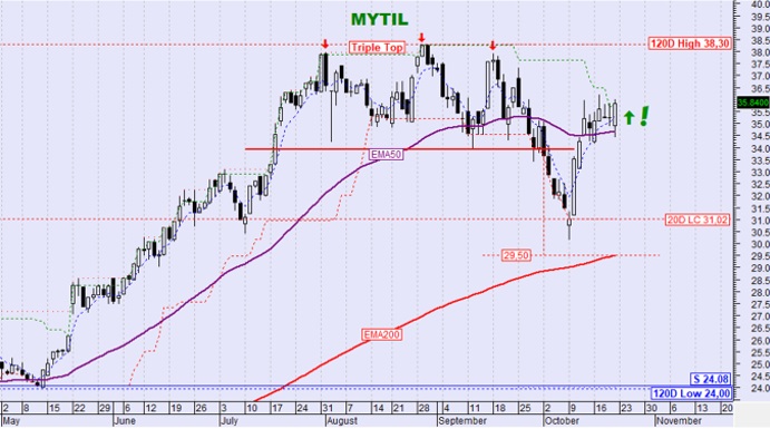 Η μετοχή επιβεβαίωσε την υπέρβαση του ΕΜΑ50 και στην τελευταία συνεδρίαση της εβδομάδας πέτυχε και νέο υψηλό κλείσιμο 20 ημερών με αποτέλεσμα η μεσοπρόθεσμη τάση να γίνει ανοδική.