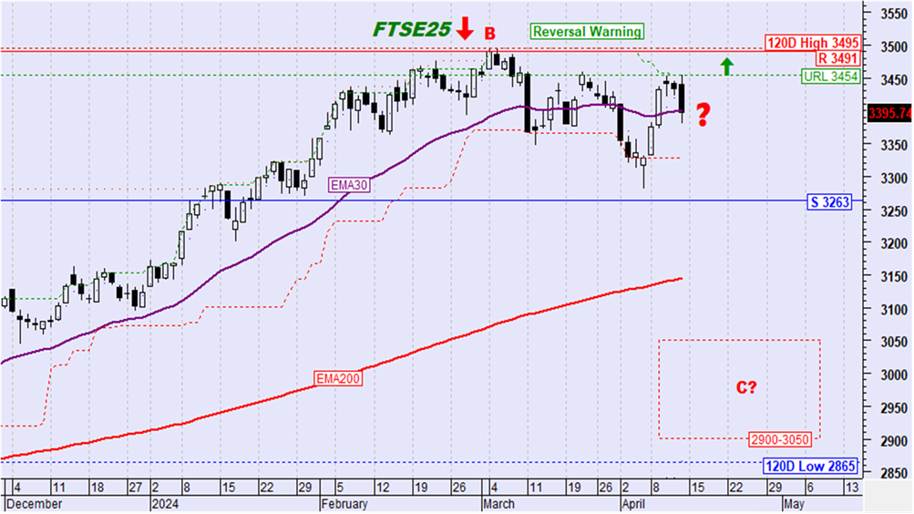 Ο FTSE25 συνέχισε έντονα καθοδικά και πέτυχε την καθοδική διάσπαση του ΕΜΑ30 με αποτέλεσμα να τεθεί υπό αμφισβήτηση η προειδοποίηση για αντιστροφή της μεσοπρόθεσμης καθοδικής τάσης σε ανοδική. Δεν υπάρχει κάποια άλλη σηματοδότηση.