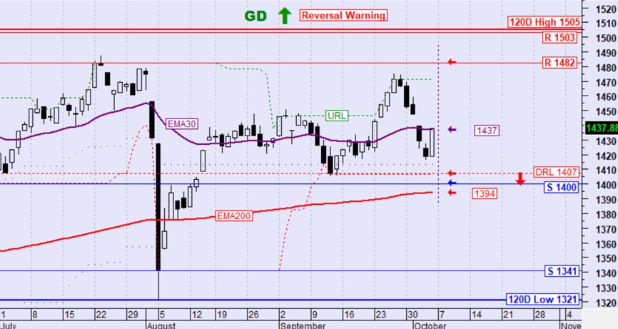 Το ημερήσιο όριο αλλαγής της τάσης (DRL) βρίσκεται στις 1407 μονάδες.