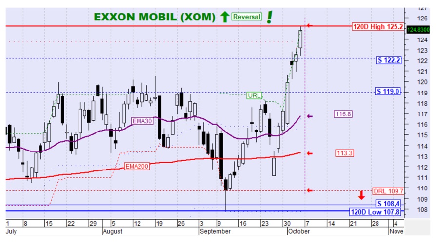 Στηρίξεις που ωθούν/μπορούν να ωθήσουν την τιμή ανοδικά: ο Εκθετικός Μέσος Όρος των 30 ημερών (ΕΜΑ30) στα 116,8$, ο Εκθετικός Μέσος Όρος των 200 ημερών (ΕΜΑ200) στα 113,3$ και το όριο αλλαγής της τάσης (DRL) στα 109,7$.