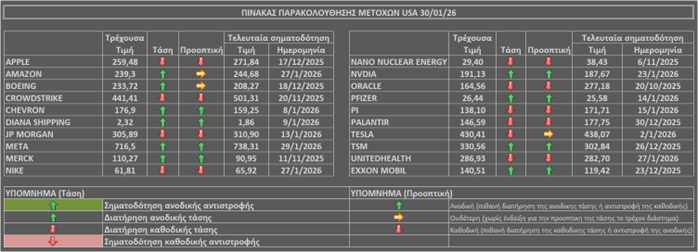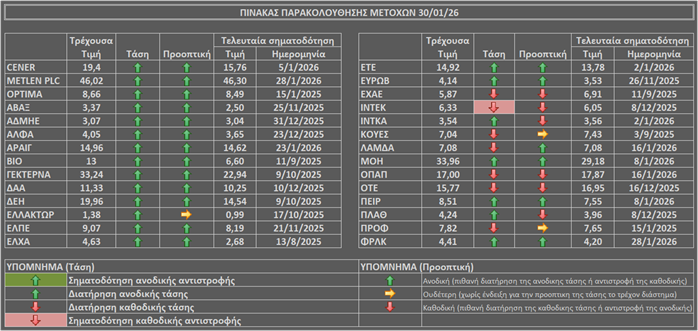 Σχόλιο τεχνικής ανάλυσης δεικτών – μετοχών με το κλείσιμο της 30-01-26