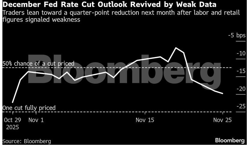 Υπενθυμίζεται ότι ενόψει της συνεδρίασης της Fed για τη νομισματική πολιτική τον Οκτώβριο, οι επενδυτές έβλεπαν μια μείωση των επιτοκίων τον Δεκέμβριο ως κάτι σίγουρο.