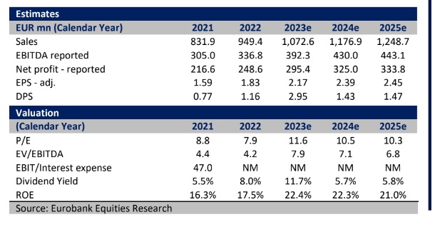 «Δεδομένης της ελαφρώς υψηλότερης εκτίμησής μας για τα έσοδα και, κατά πάσα πιθανότητα, της υψηλότερης παραδοχής για το μικτό περιθώριο κέρδους, τα επαναβαθμολογημένα μας νούμερα καθαρού κέρδους για 2023 προσγειώνονται κατά περίπου 3% υψηλότερα από τις εκτιμήσεις της διοίκησης που αντιστοιχούν σε 19% αύξηση σε ετήσια βάση.