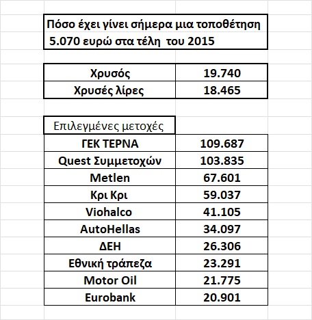 Ο χρυσός έχει προστατέψει και με το παραπάνω την αξία του πλούτου, αλλά οι τοποθετήσεις σε επιλεγμένες ελληνικές μετοχές τον έχουν πολλαπλασιάσει.