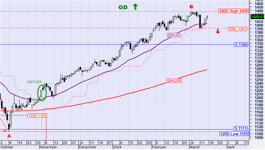 Η σηματοδότηση αυτή αντιμετωπίζεται με επιφύλαξη καθόσον δεν υπάρχει προς το παρόν κάποιος ισχυρός αντιστρεπτικός μεσοπρόθεσμος σχηματισμός που να εδραιώσει αυτή την αντιστροφή και υπάρχουν πιθανότητες να επαναληφθεί η πορεία των δύο πρώτων εβδομάδων του 2024.