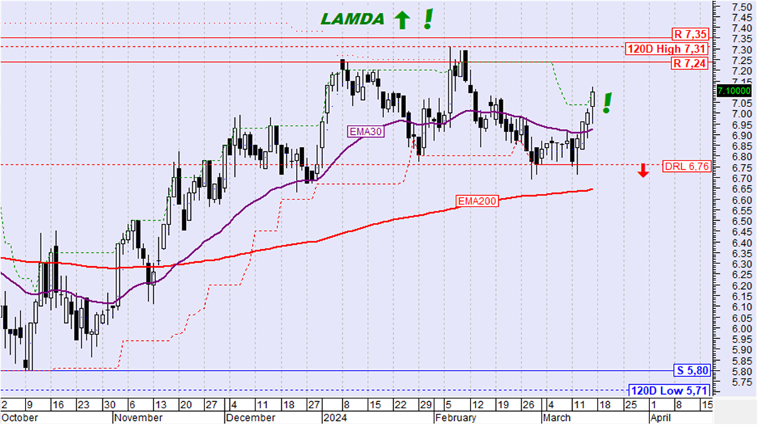 Το ημερήσιο όριο αλλαγής της τάσης σε ανοδική βρίσκεται στα 7,30€ (κλείσιμο).