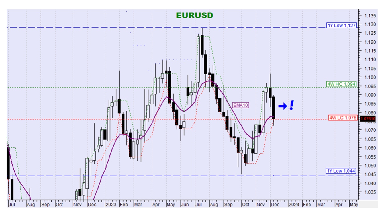 Η τιμή του € έναντι του $ συνέχισε με μία έντονα διορθωτική εβδομάδα η οποία έφερε τη διάσπαση του ΕΜΑ10. Η τάση έγινε ουδέτερη.