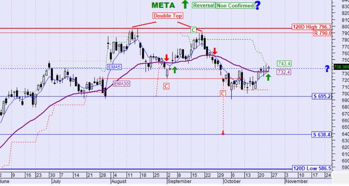 Η τιμή της μετοχής την περασμένη εβδομάδα κινήθηκε ανοδικά και πέτυχε την υπέρβαση του ΕΜΑ30. Ο ΕΜΑ5 πέρασε ψηλότερα του ΕΜΑ30 με αποτέλεσμα τη σηματοδότηση αντιστροφής της μεσοπρόθεσμης τάσης σε ανοδική. Η σηματοδότηση θα επιβεβαιωθεί με υπέρβαση του ορίου επιβεβαίωσης της αντιστροφής της τάσης σε ανοδική. Παραμένει ενεργός ο σχηματισμός διπλής κορυφής που έχει καθοδικό στόχο στην περιοχή της στήριξης στα 638,4$. Ακυρώνεται με υπέρβαση των 790$.