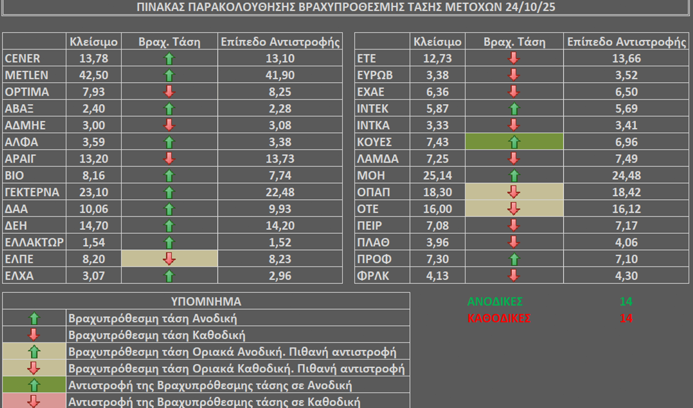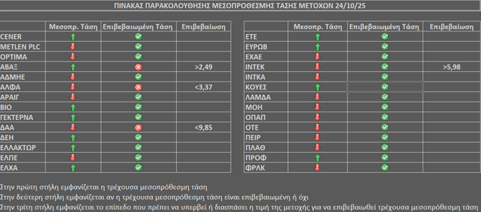 Σχόλιο τεχνικής ανάλυσης δεικτών – μετοχών με το κλείσιμο της 24-10-25