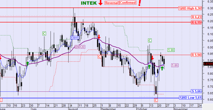 Το ημερήσιο όριο επιβεβαίωσης της αντιστροφής της τάσης σε ανοδική βρίσκεται στα 5,98€