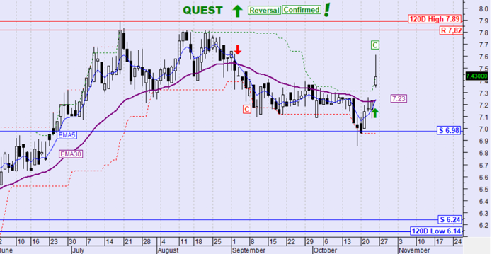 Η τιμή της μετοχής την περασμένη εβδομάδα κινήθηκε ανοδικά και πέτυχε την υπέρβαση του ΕΜΑ30. Ο ΕΜΑ5 πέρασε ψηλότερα του ΕΜΑ30 με αποτέλεσμα τη σηματοδότηση αντιστροφής της μεσοπρόθεσμης τάσης σε ανοδική. Η σηματοδότηση θα επιβεβαιωθεί με υπέρβαση του ορίου επιβεβαίωσης της αντιστροφής της τάσης σε ανοδική.