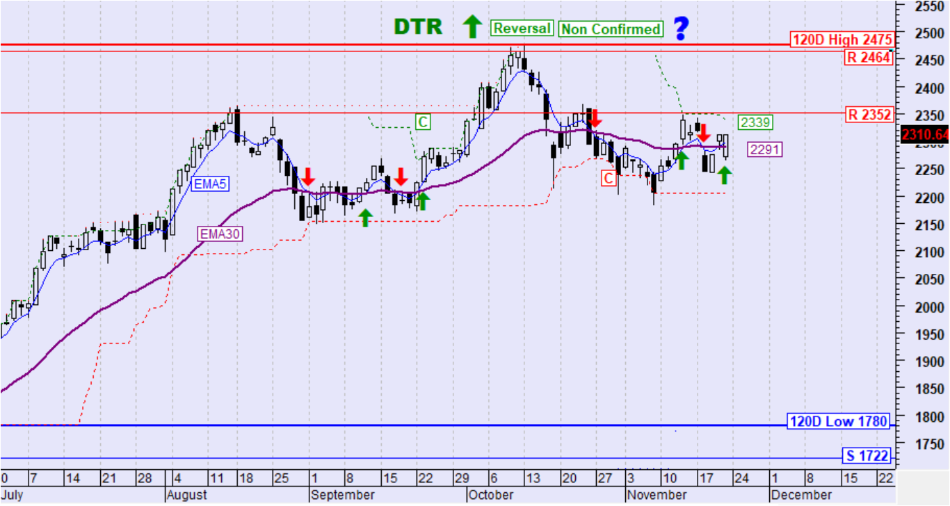Το ημερήσιο όριο επιβεβαίωσης της αντιστροφής της τάσης σε ανοδική βρίσκεται στις 2339 μονάδες