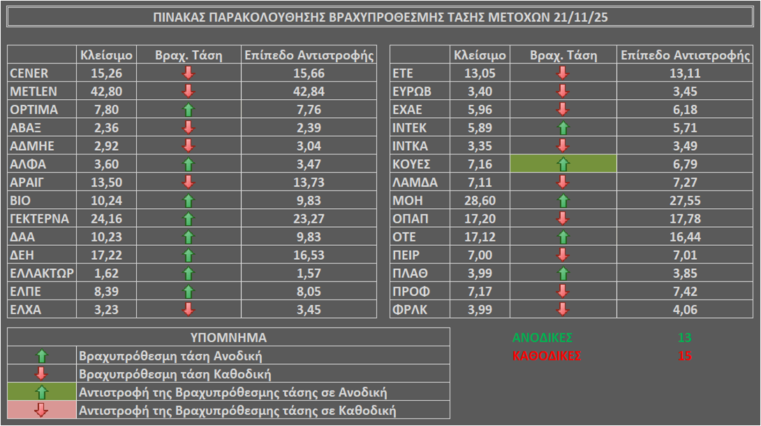 Σχόλιο τεχνικής ανάλυσης δεικτών – μετοχών με το κλείσιμο της 21-11-25.
