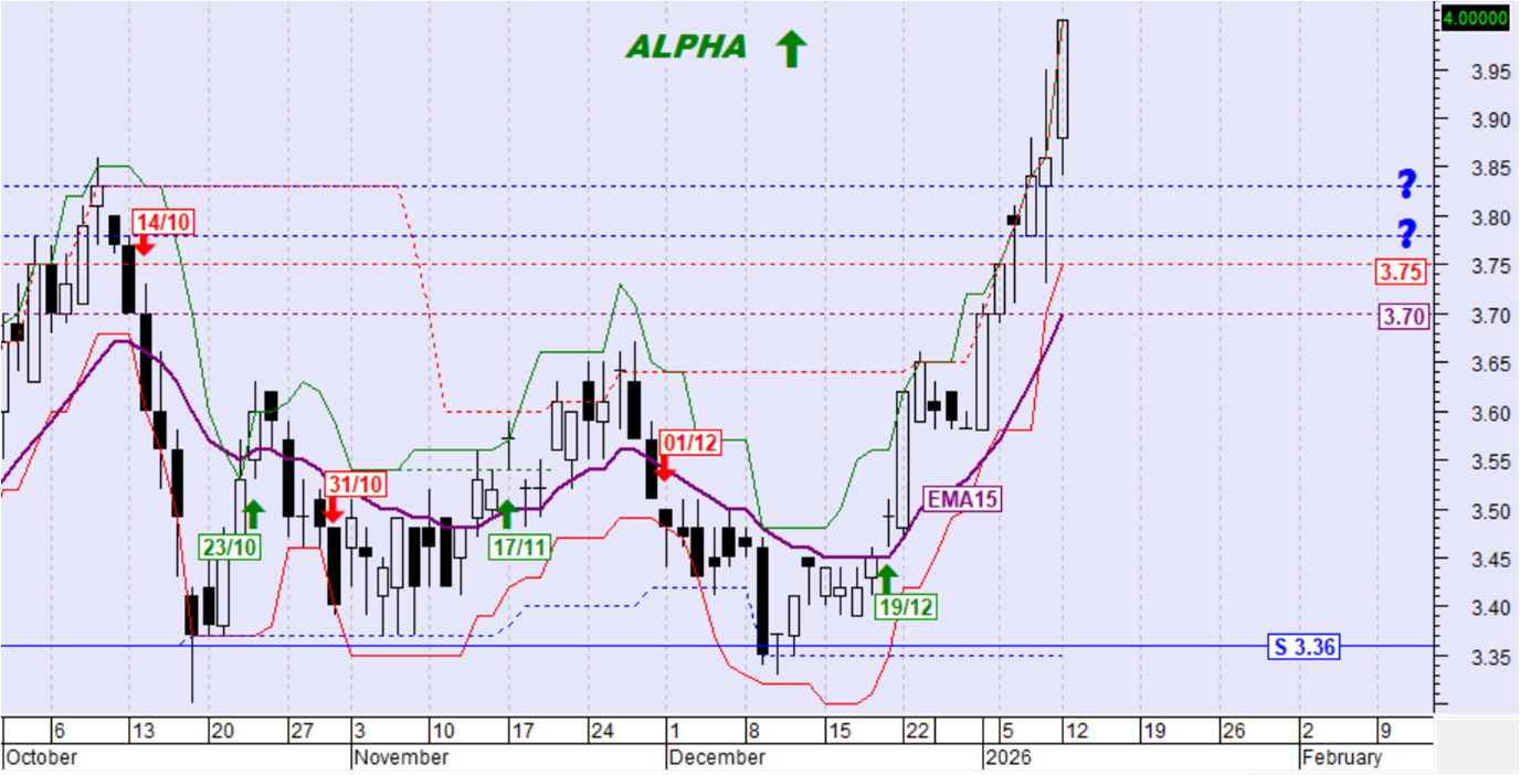 ο Εκθετικός Μέσος Όρος των 15 ημερών (ΕΜΑ15) στα 3,70€