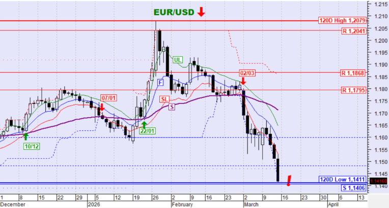 Η τιμή του € έναντι του $ κινήθηκε καθοδικά, διέσπασε τις στηρίξεις, πέτυχε νέο χαμηλό 120 ημερών και διατηρεί την καθοδική τάση. Έφτασε στην παλιά στήριξη στα 1,1406$ και θα δοκιμάσει την ισχύ της.
