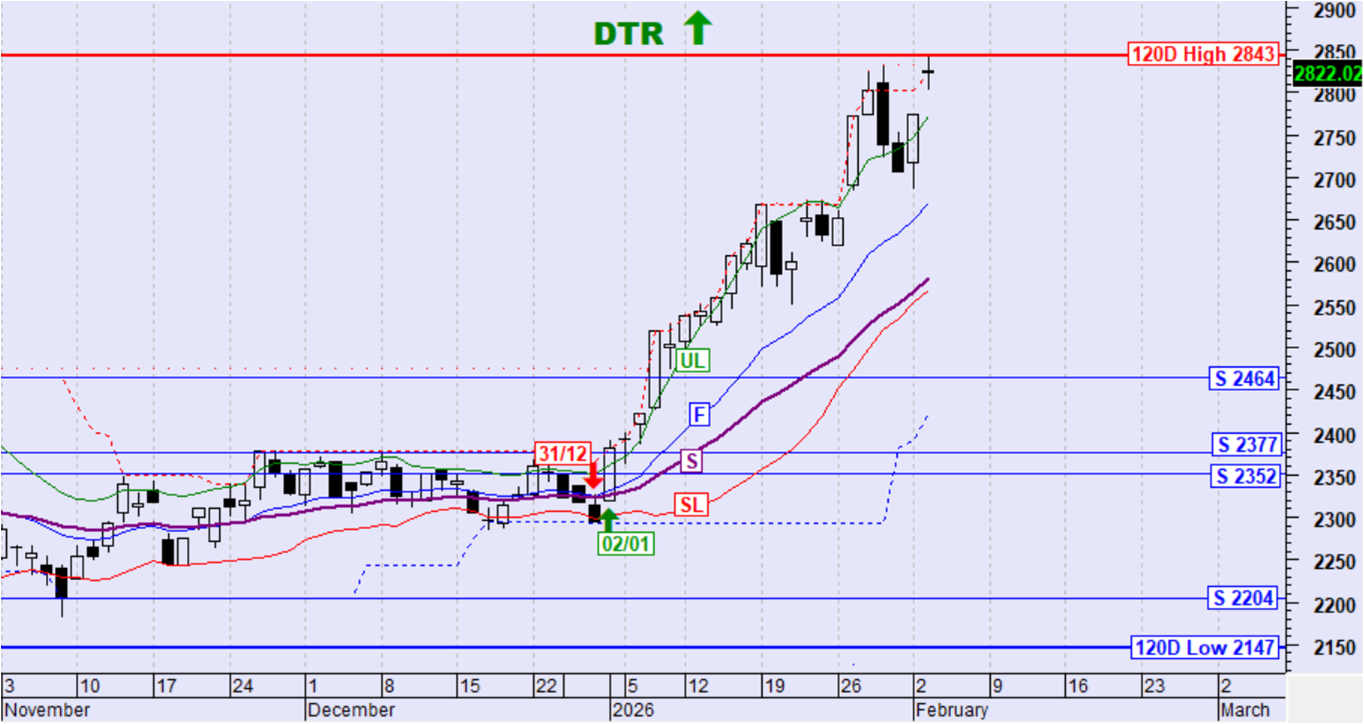 το υψηλό των 120 ημερών στις 2843 μονάδες