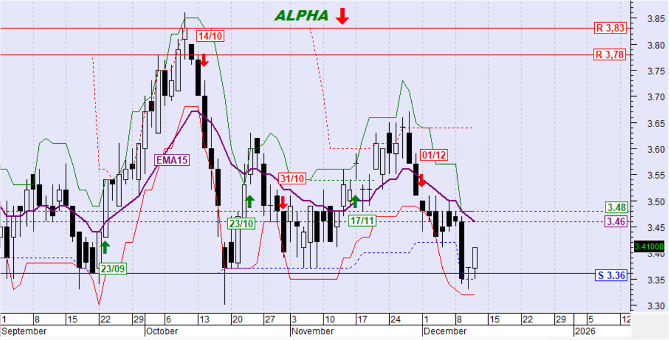 Ημερήσιο όριο αντιστροφής της βραχυπρόθεσμης τάσης σε ανοδική: 3,48€ (κλείσιμο)