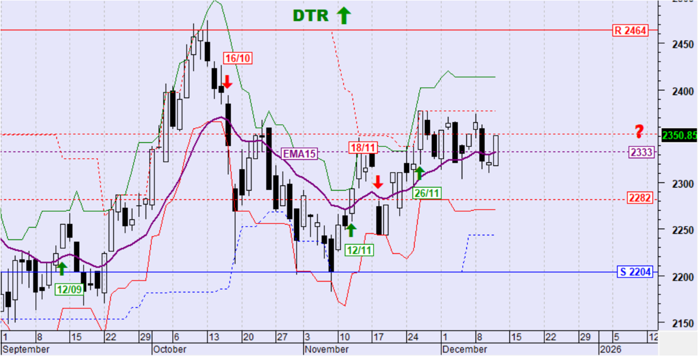 ο Εκθετικός Μέσος Όρος των 15 ημερών (ΕΜΑ15) στις 2333 μονάδες