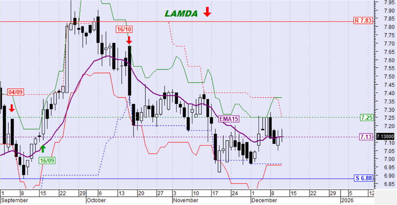 Ημερήσιο όριο αντιστροφής της βραχυπρόθεσμης τάσης σε ανοδική: 7.25€ (κλείσιμο)