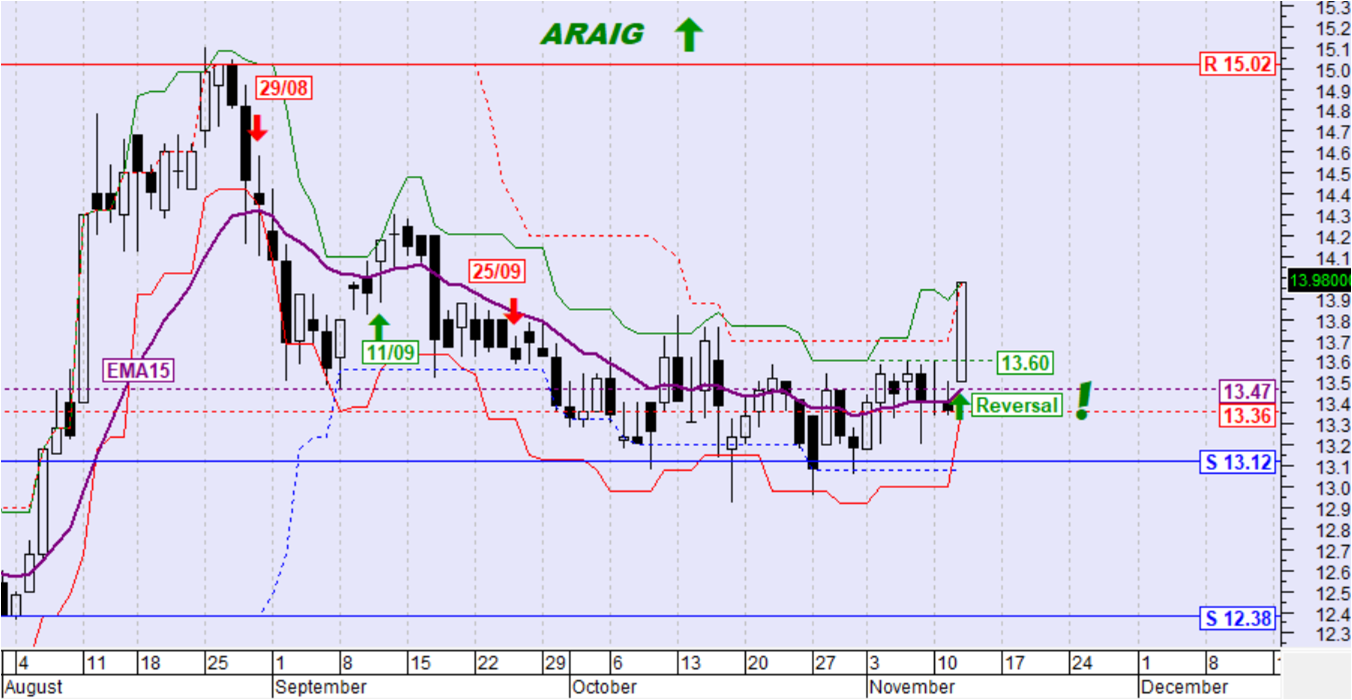 Βραχυπρόθεσμη τάση: αντιστράφηκε σε ανοδική με την υπέρβαση των 13,60€ στο κλείσιμο