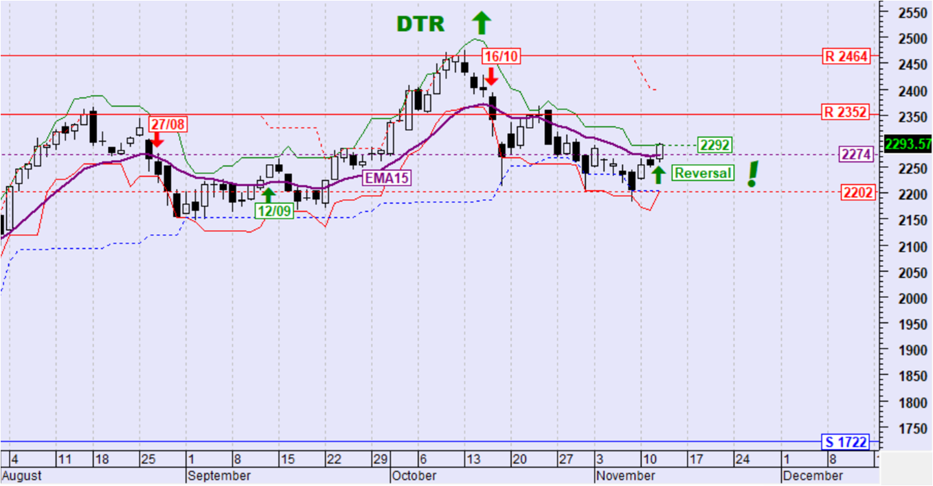 Βραχυπρόθεσμη τάση: αντιστράφηκε σε ανοδική με την οριακή υπέρβαση των 2292 μονάδων στο κλείσιμο