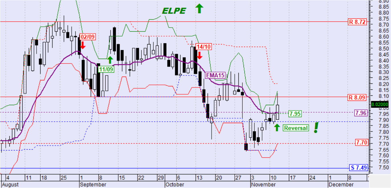 Βραχυπρόθεσμη τάση: αντιστράφηκε σε ανοδική με την υπέρβαση των 7,95€ στο κλείσιμο