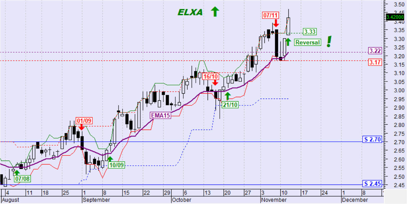 Ημερήσιο όριο αντιστροφής της βραχυπρόθεσμης τάσης σε καθοδική: 3,17€ (κλείσιμο)