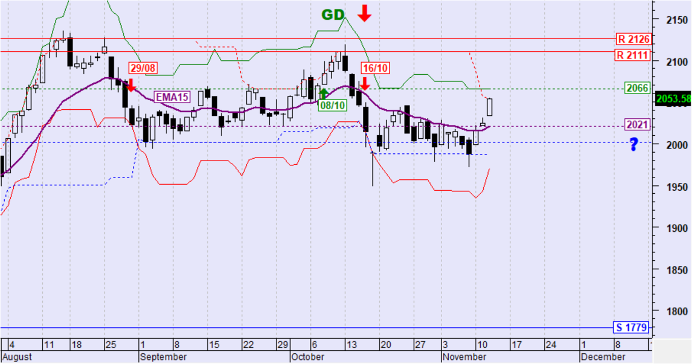 Ημερήσιο όριο αντιστροφής της βραχυπρόθεσμης τάσης σε ανοδική: 2066 μονάδες