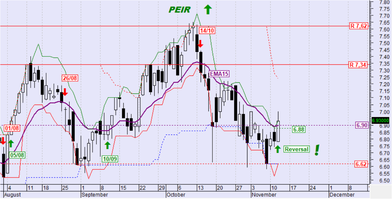 Ημερήσιο όριο αντιστροφής της βραχυπρόθεσμης τάσης σε καθοδική: 6,62€ (κλείσιμο)