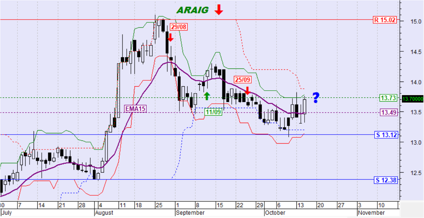ο Εκθετικός Μέσος Όρος των 15 ημερών (ΕΜΑ15) στα 13,49€