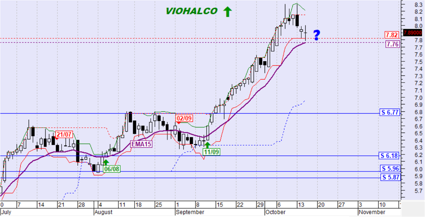 Ημερήσιο όριο αντιστροφής της βραχυπρόθεσμης τάσης σε καθοδική: 7.82€ (κλείσιμο)