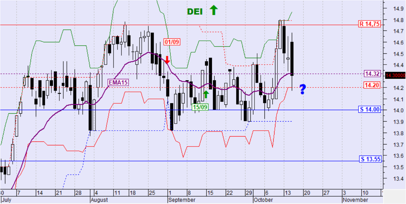 Ημερήσιο όριο αντιστροφής της βραχυπρόθεσμης τάσης σε καθοδική: 14.20€ (κλείσιμο)