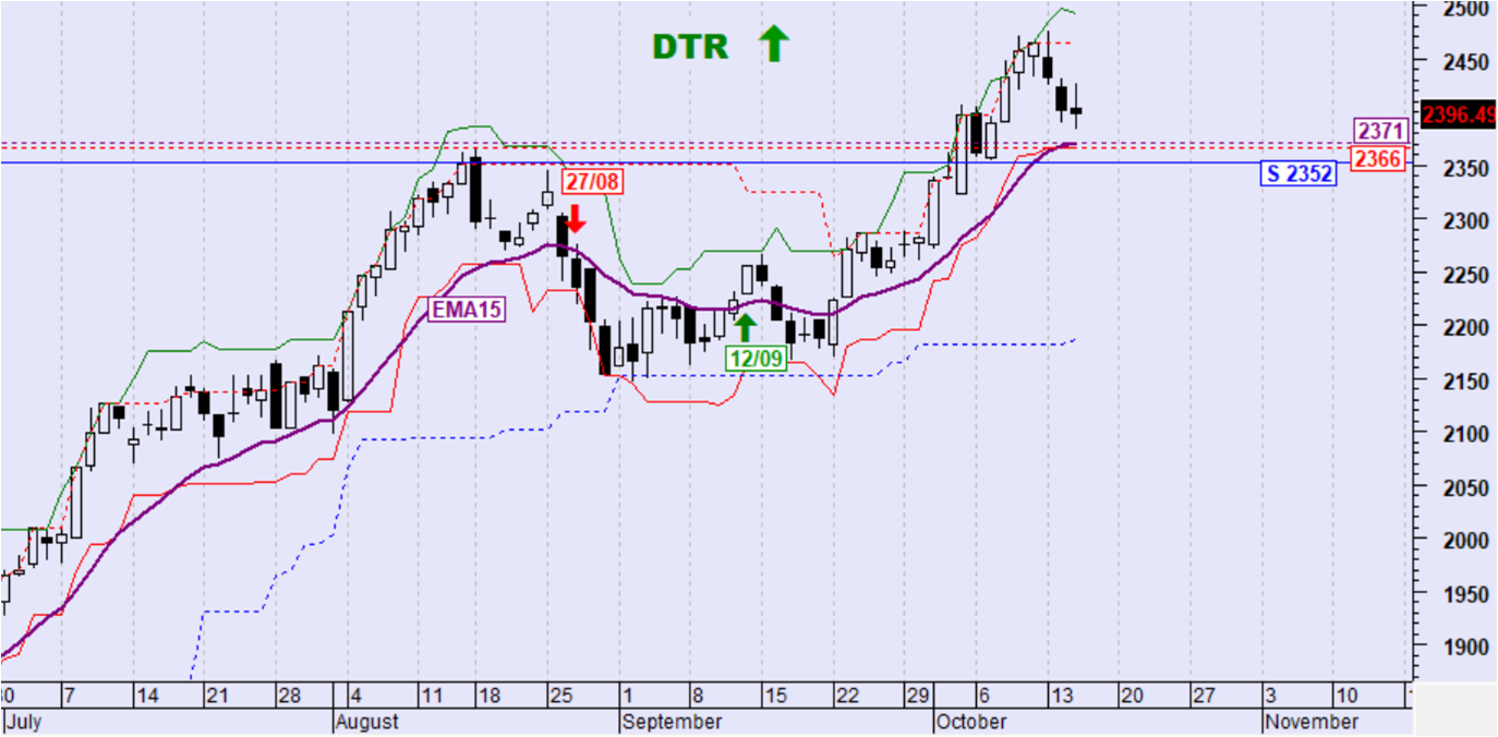Ημερήσιο όριο αντιστροφής της βραχυπρόθεσμης τάσης σε καθοδική: 2366 μονάδες