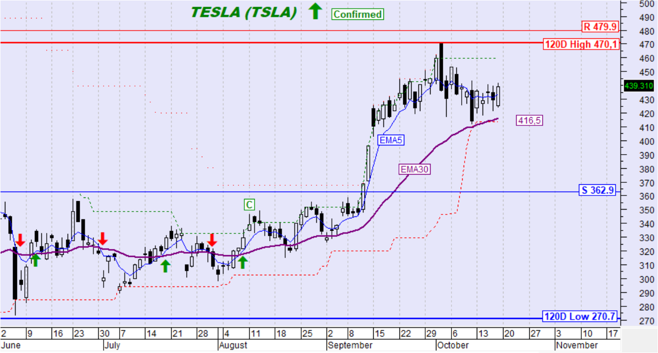 Η μεσοπρόθεσμη τάση των μετοχών του καλαθιού παρακολούθησης στο άνοιγμα της εβδομάδας (διαμόρφωση με το κλείσιμο της Παρασκευής 17/10) είναι όπως στον παρακάτω πίνακα