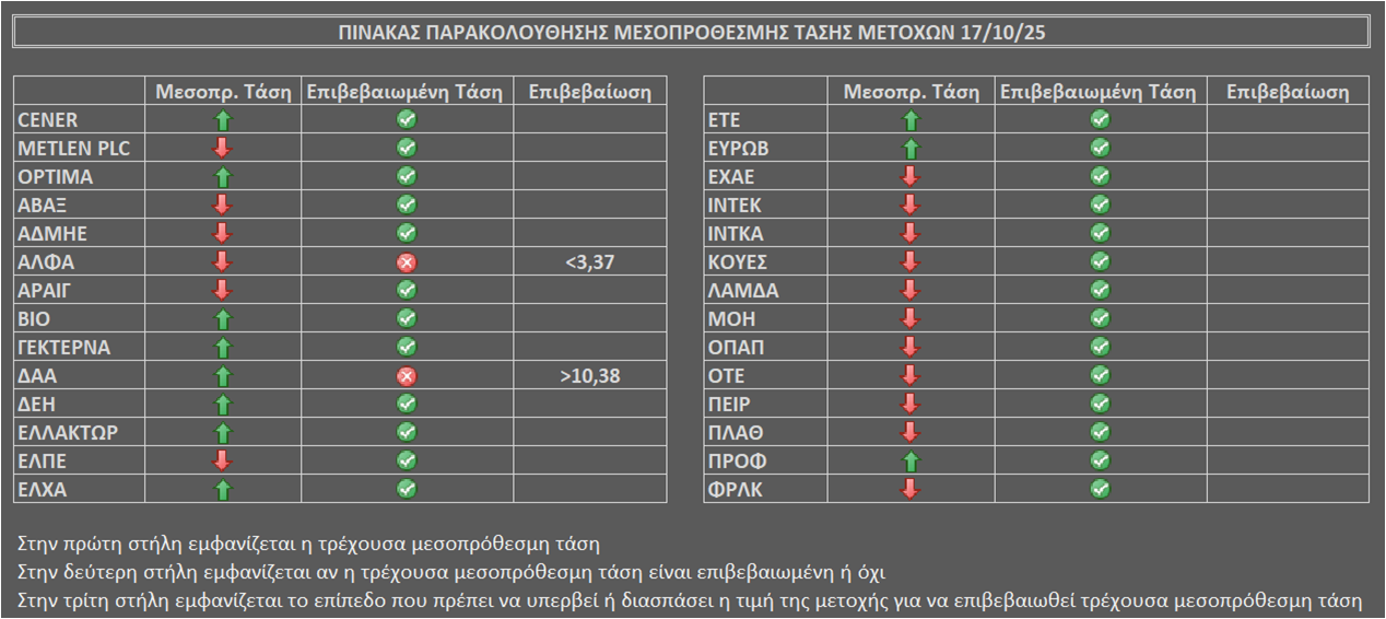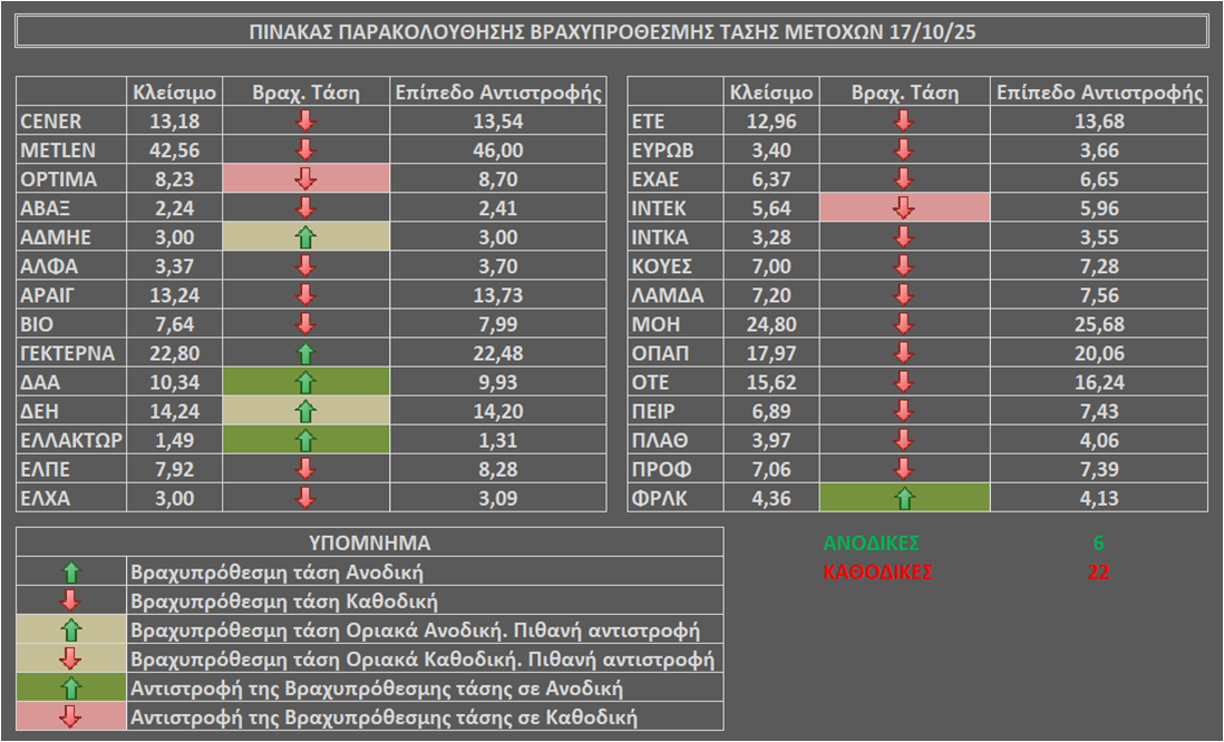Σχόλιο τεχνικής ανάλυσης δεικτών – μετοχών με το κλείσιμο της 17-10-25