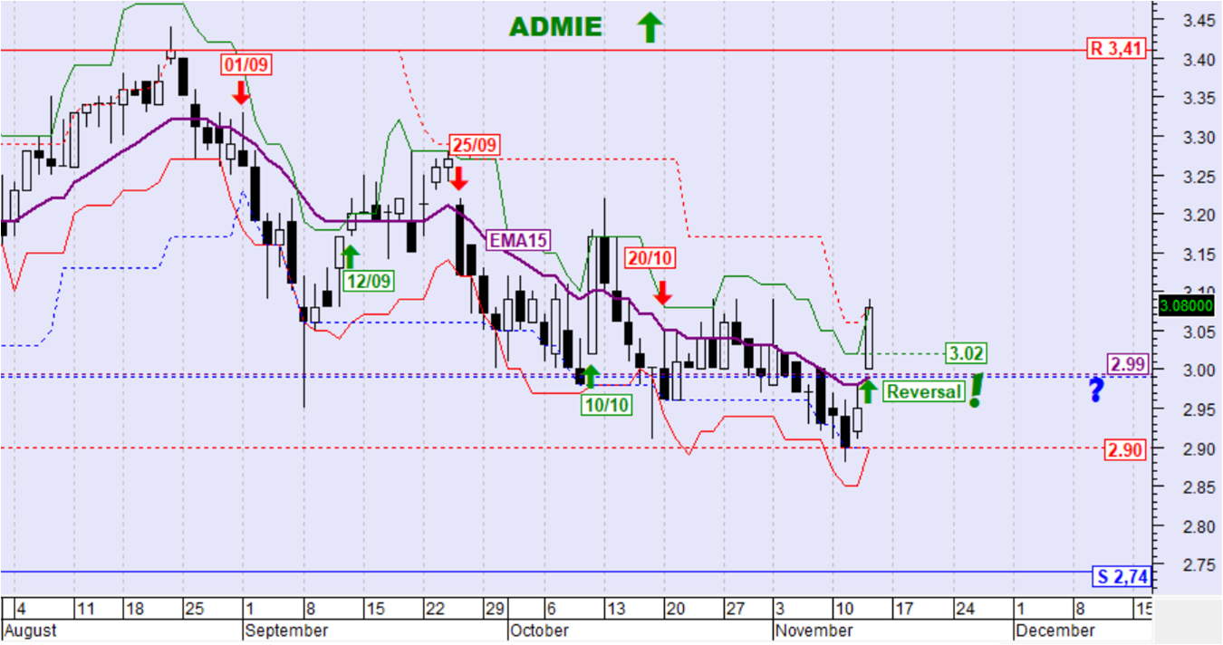 Βραχυπρόθεσμη τάση: αντιστράφηκε σε ανοδική με την υπέρβαση των 3.02€ στο κλείσιμο