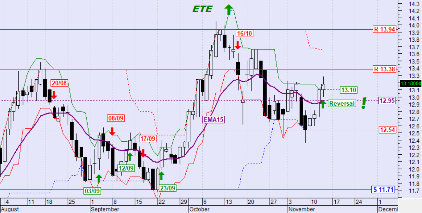 Βραχυπρόθεσμη τάση: αντιστράφηκε σε ανοδική με την υπέρβαση των 13.10€ στο κλείσιμο
