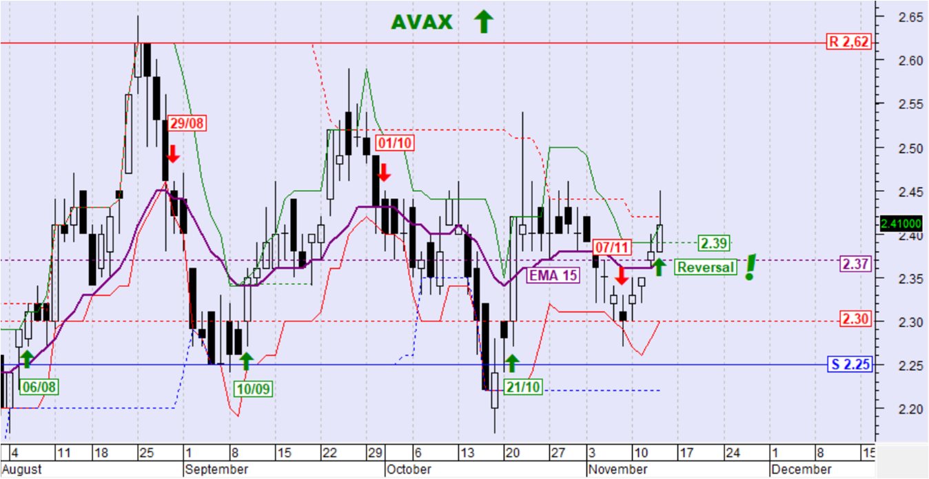 Βραχυπρόθεσμη τάση: αντιστράφηκε σε ανοδική με την υπέρβαση των 2.39€ στο κλείσιμο