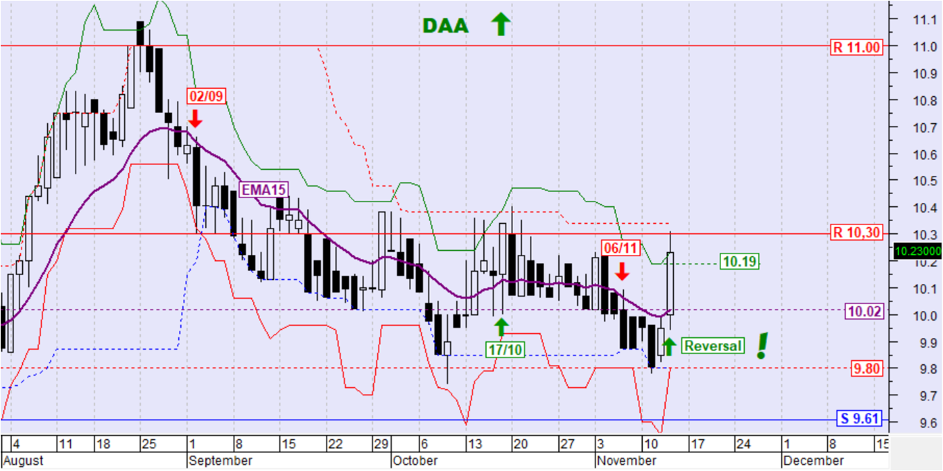 Βραχυπρόθεσμη τάση: αντιστράφηκε σε ανοδική με την υπέρβαση των 10.19€ στο κλείσιμο