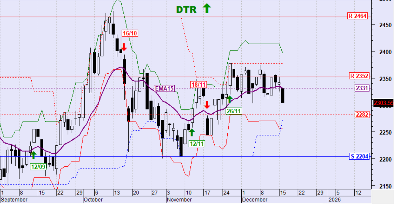 ο Εκθετικός Μέσος Όρος των 15 ημερών (ΕΜΑ15) στις 2331 μονάδες