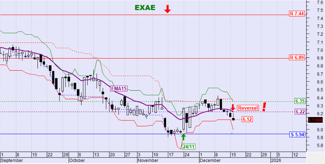 Βραχυπρόθεσμη τάση: αντιστράφηκε σε καθοδική με την καθοδική διάσπαση των 6.12€ στο κλείσιμο