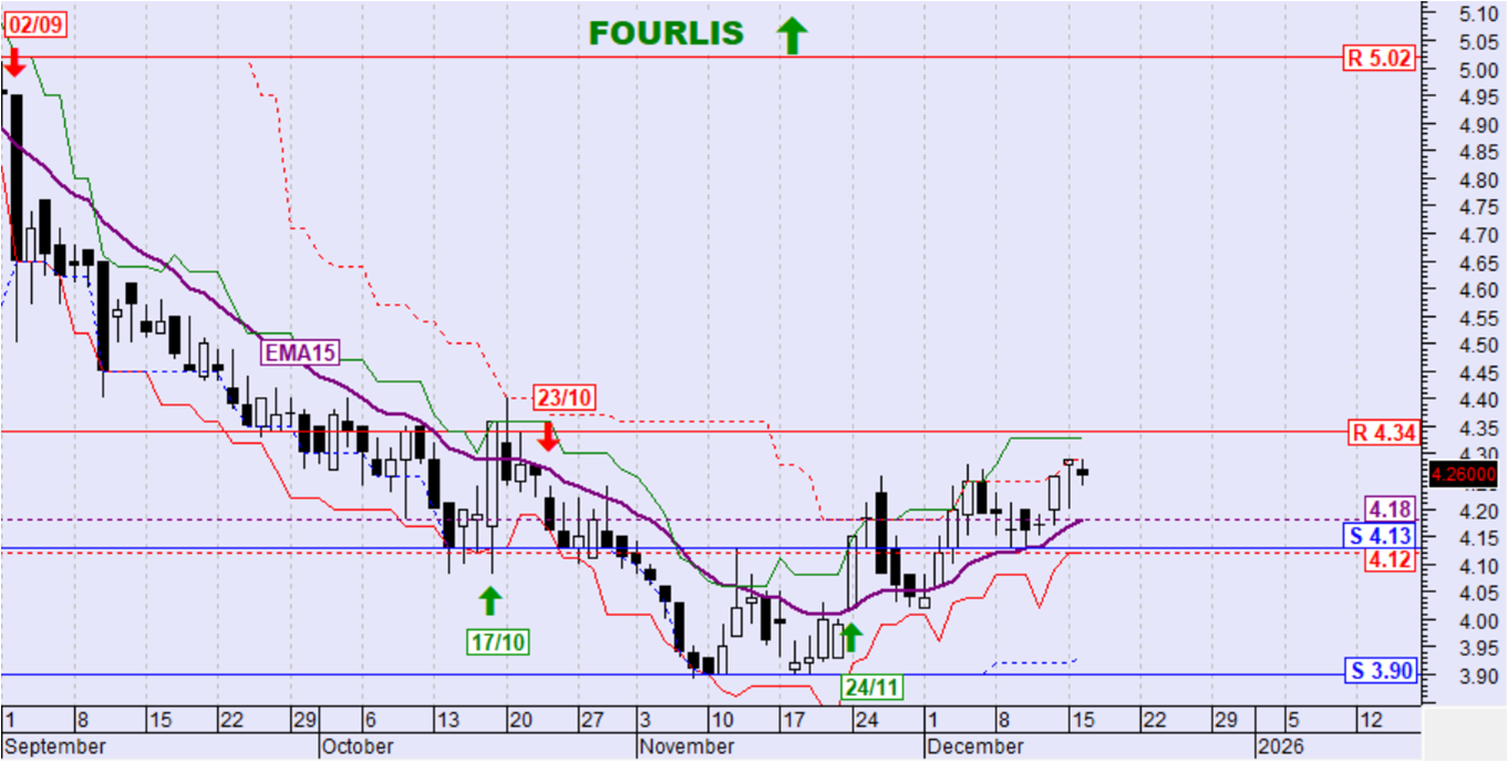 ο Εκθετικός Μέσος Όρος των 15 ημερών (ΕΜΑ15) στα 4.18€