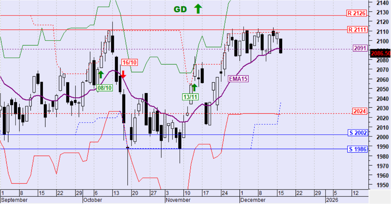 ο Εκθετικός Μέσος Όρος των 15 ημερών (ΕΜΑ15) στις 2091 μονάδες