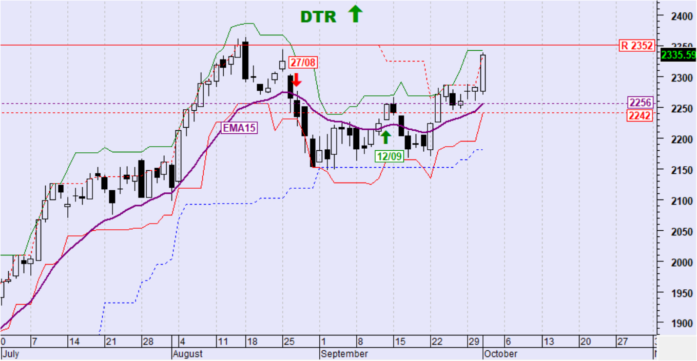 Ημερήσιο όριο αντιστροφής της βραχυπρόθεσμης τάσης σε καθοδική: 2242 μονάδες