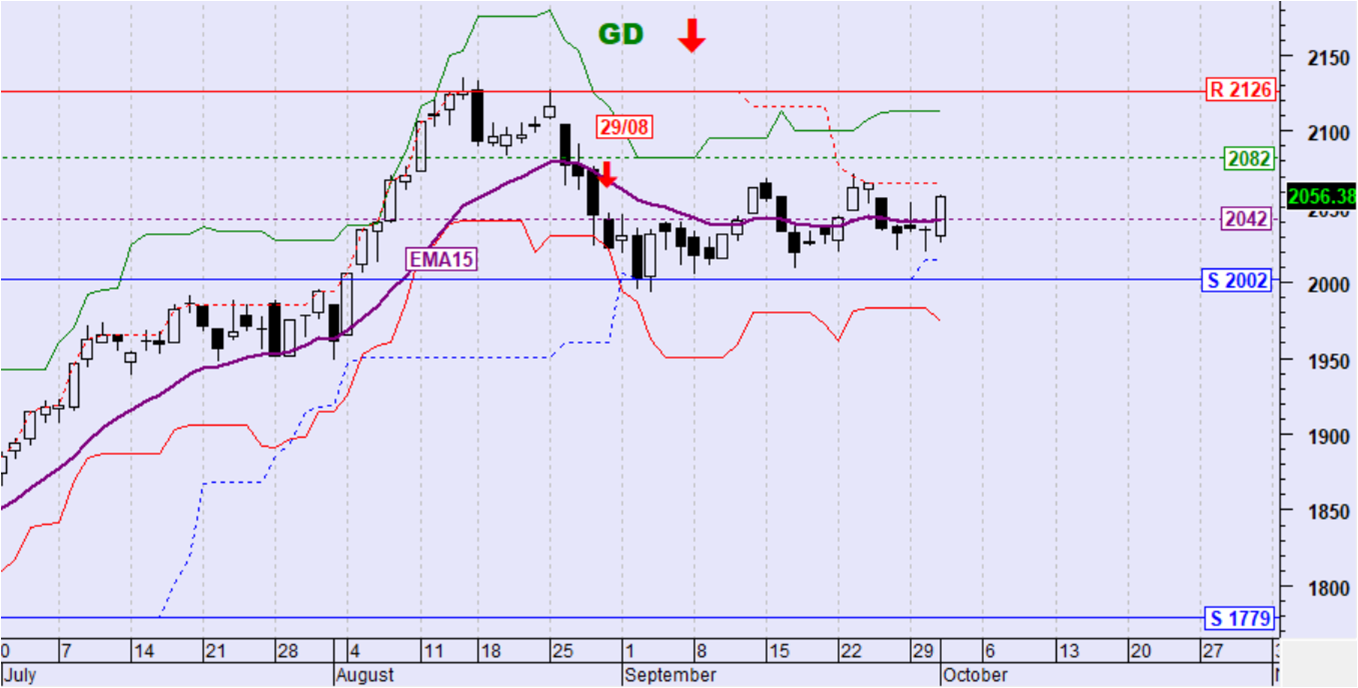 Ημερήσιο όριο αντιστροφής της βραχυπρόθεσμης τάσης σε ανοδική: 2082 μονάδες
